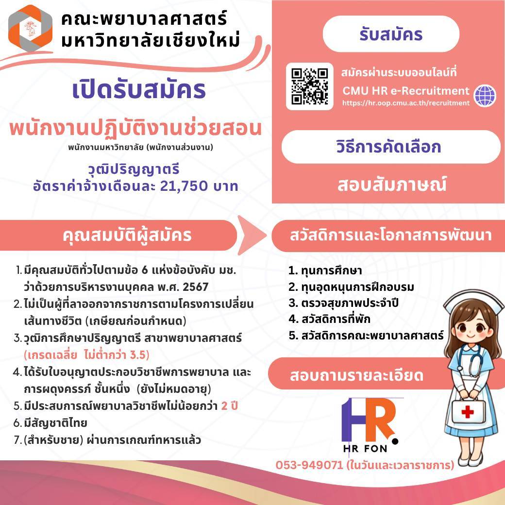 คณะพยาบาลศาสตร์ มช. ประกาศรับสมัครอาจารย์ 7 อัตรา (วุฒิปริญญาเอกและปริญญาโท)