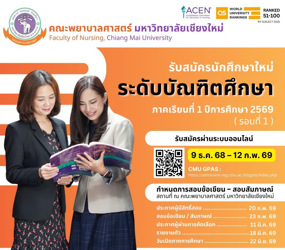 คณะพยาบาลศาสตร์ มหาวิทยาลัยเชียงใหม่ เป็นสถาบันการศึกษาพยาบาลชั้นนำระดับสากลเพื่อสร้างสุขภาวะที่ยั่งยืน