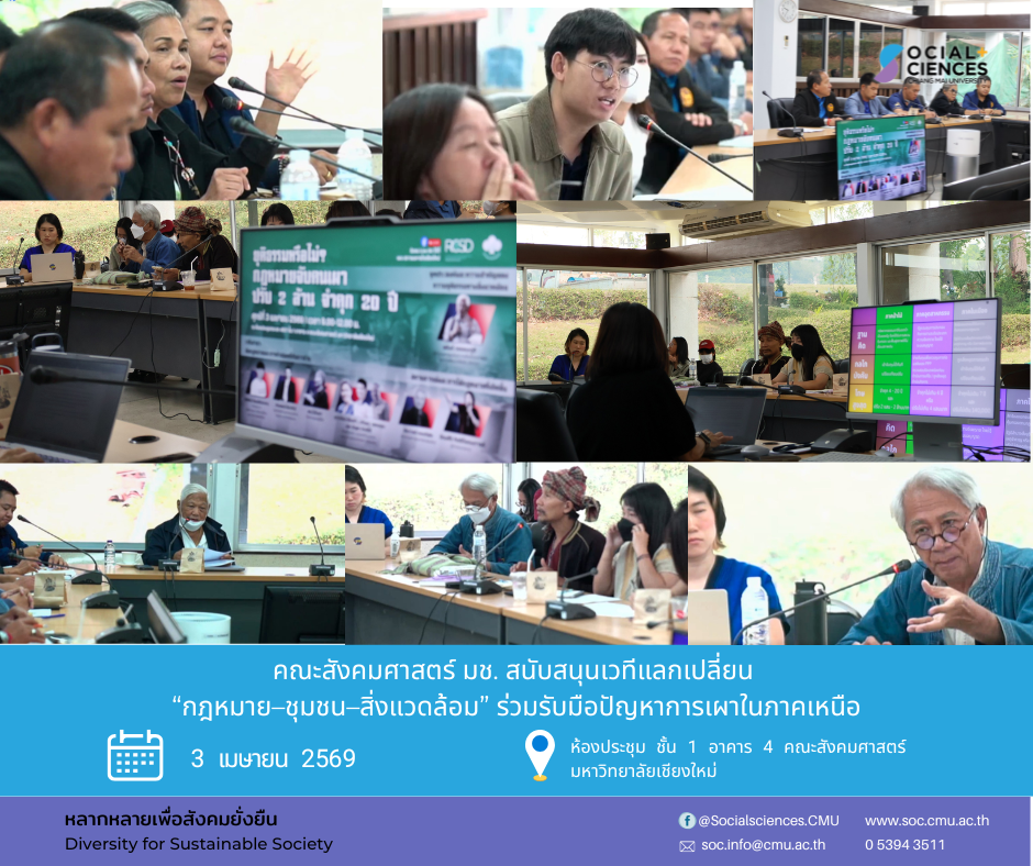 คณะสังคมศาสตร์ มช. สนับสนุนเวทีแลกเปลี่ยน “กฎหมาย–ชุมชน–สิ่งแวดล้อม” ร่วมรับมือปัญหาการเผาในภาคเหนือ คณะสังคมศาสตร์