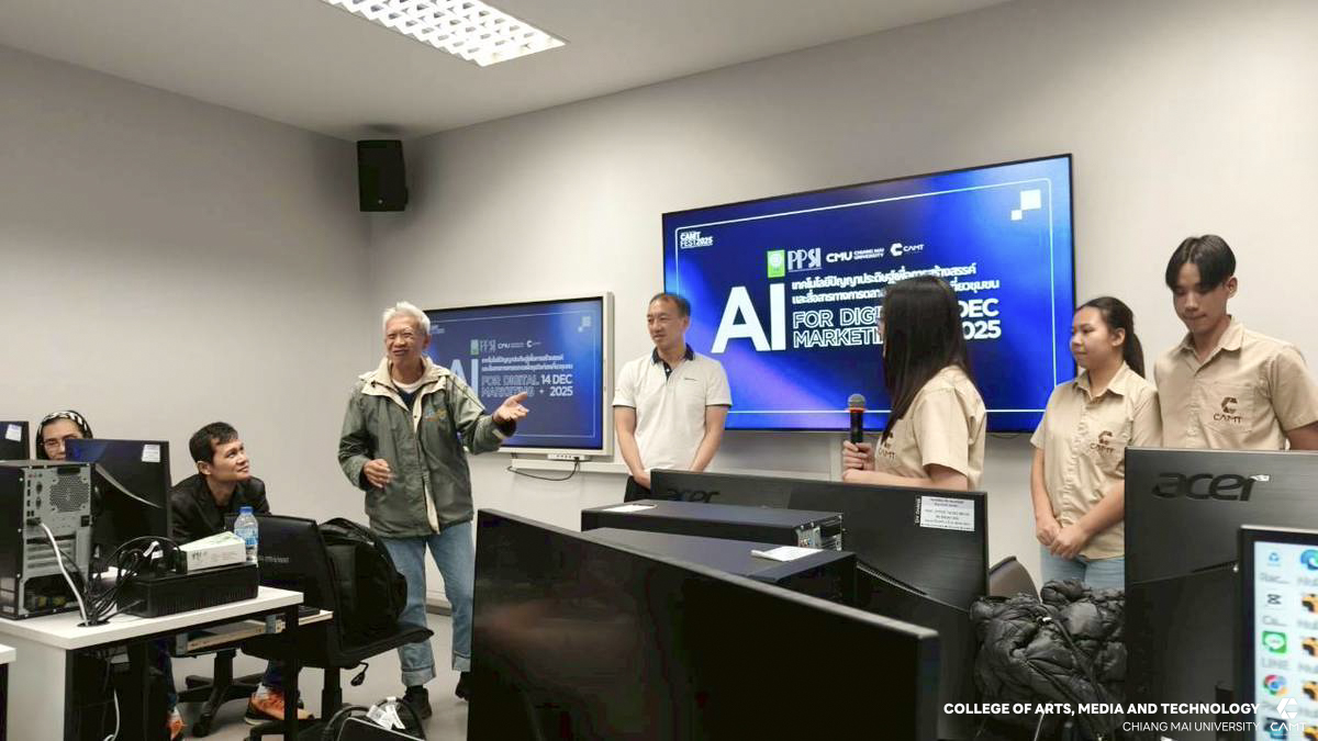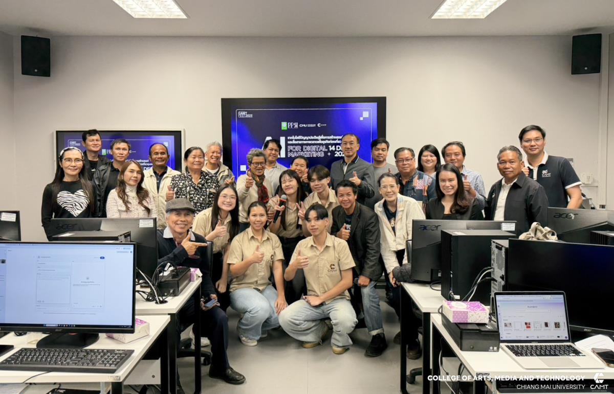กลุ่มวิจัย CAMT Social Practice นำโดยผู้ช่วยศาสตราจารย์ ดร.ดนัยธัญ พงษ์พัชราธรเทพ รองคณบดีพร้อมด้วย ผู้ช่วยศาสตราจารย์ ดร.สมเกียรติ น่วมนา ผู้ช่วยคณบดีวิทยาลัยศิลปะ สื่อ และเทคโนโลยี มหาวิทยาลัยเชียงใหม่ ร่วมกับมูลนิธิสถาบันศึกษานโยบายสาธารณะ (PPSI) โดย ศาสตราจารย์ (เกียรติคุณ) ดร.มิ่งสรรพ์ ขาวสอาด จัดฝึกอบรมผู้ประกอบการท่องเที่ยวเชียงใหม่ ในหัวข้อ AI for Digital Marketing สำหรับผู้ประกอบการท่องเที่ยวชุมชน ใช้เครื่องมือ Generative AI ลดต้นทุนและเพิ่มประสิทธิภาพการผลิตสื่อการตลาดให้กับธุรกิจท่องเที่ยวชุมชน