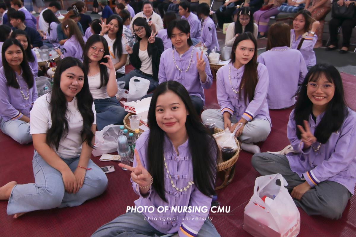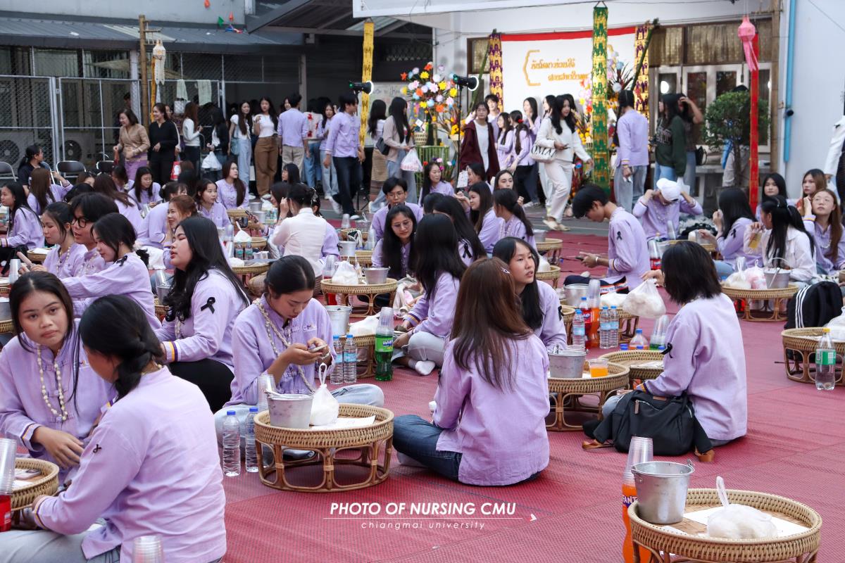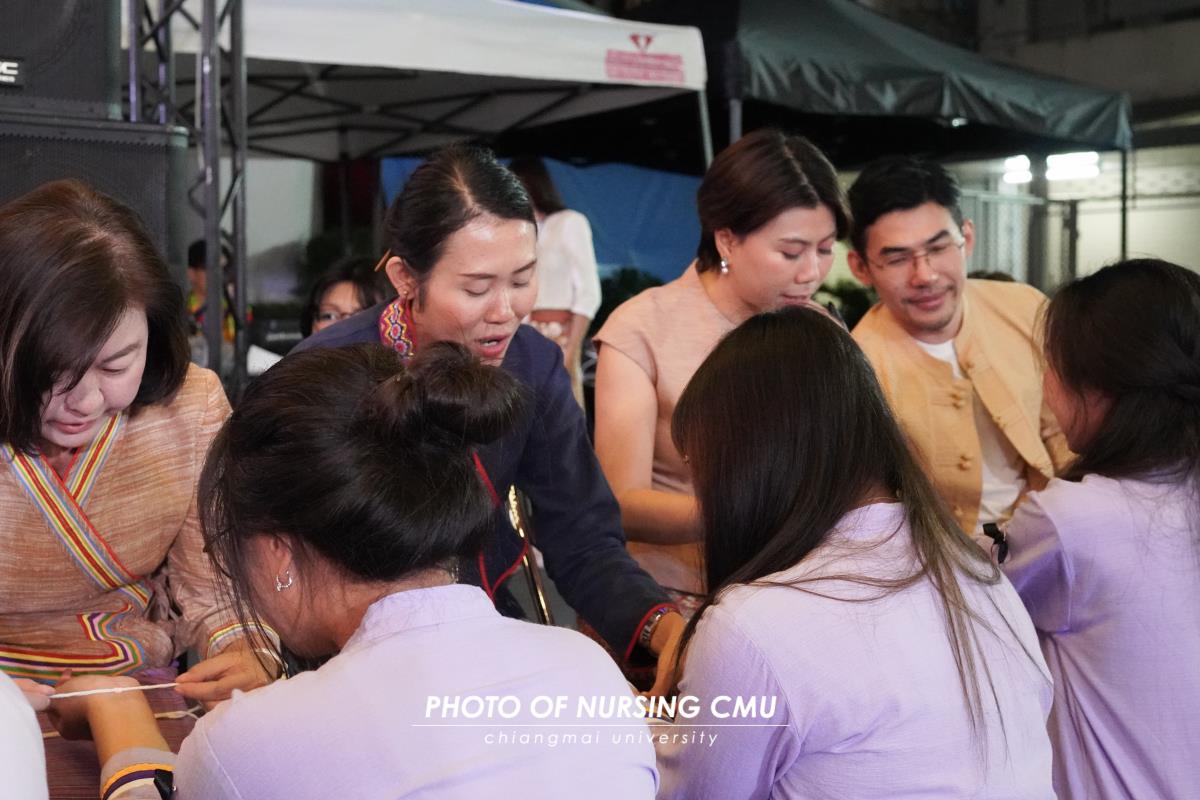 สโมสรนักศึกษาคณะพยาบาลศาสตร์ มหาวิทยาลัยเชียงใหม่ จัดพิธีบายศรีสู่ขวัญและงานรับน้องขันโตก ประจำปีการศึกษา 2568 "ขันโตกม่วนใจ๋ สานสายใยพยาบาล" โดยมี ผู้ช่วยศาสตราจารย์ ดร.สุภารัตน์ วังศรีคูณ คณบดีคณะพยาบาลศาสตร์ เป็นประธานกล่าวเปิดงาน ณ ลานอเนกประสงค์ หลังหอพักนักศึกษา 1 เมื่อวันเสาร์ที่ 13 ธันวาคม 2568