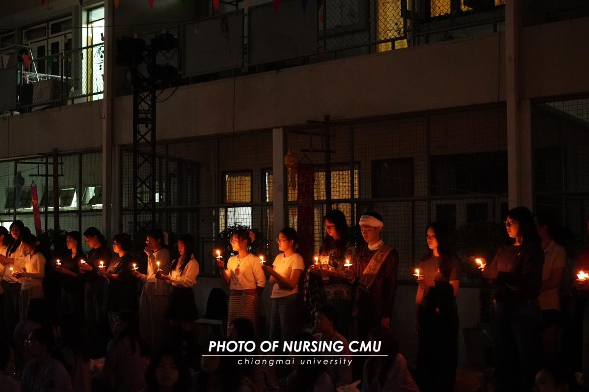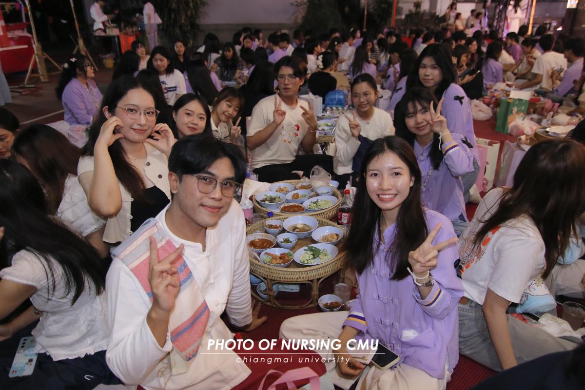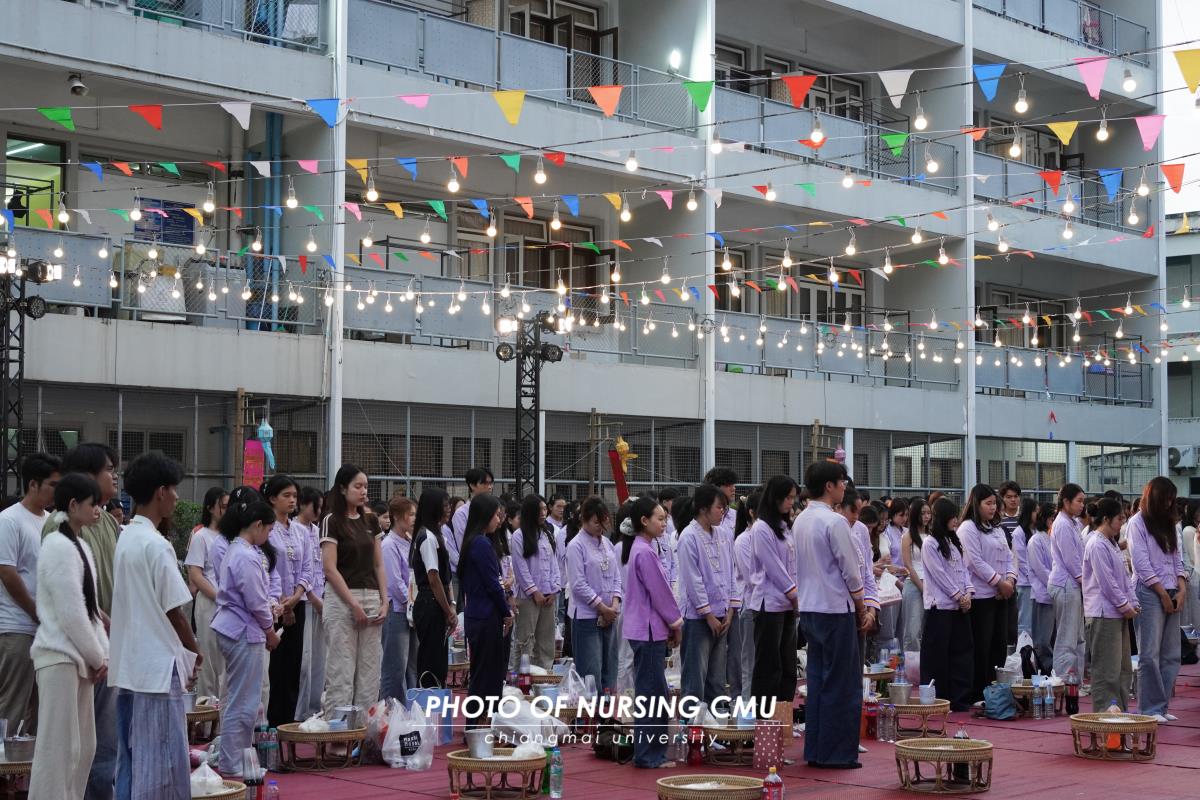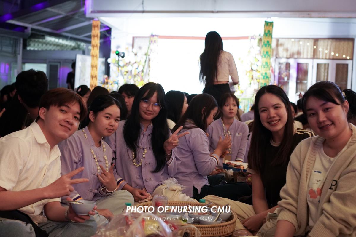 สโมสรนักศึกษาคณะพยาบาลศาสตร์ มหาวิทยาลัยเชียงใหม่ จัดพิธีบายศรีสู่ขวัญและงานรับน้องขันโตก ประจำปีการศึกษา 2568 "ขันโตกม่วนใจ๋ สานสายใยพยาบาล" โดยมี ผู้ช่วยศาสตราจารย์ ดร.สุภารัตน์ วังศรีคูณ คณบดีคณะพยาบาลศาสตร์ เป็นประธานกล่าวเปิดงาน ณ ลานอเนกประสงค์ หลังหอพักนักศึกษา 1 เมื่อวันเสาร์ที่ 13 ธันวาคม 2568