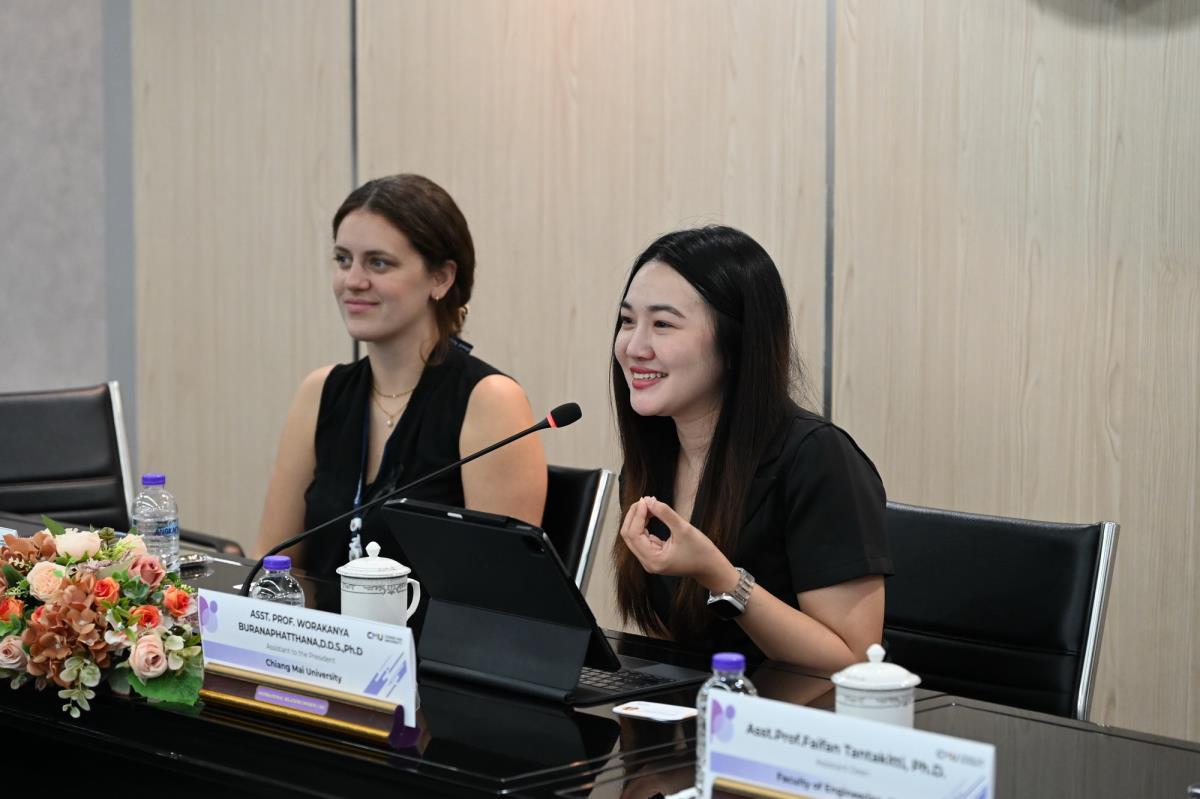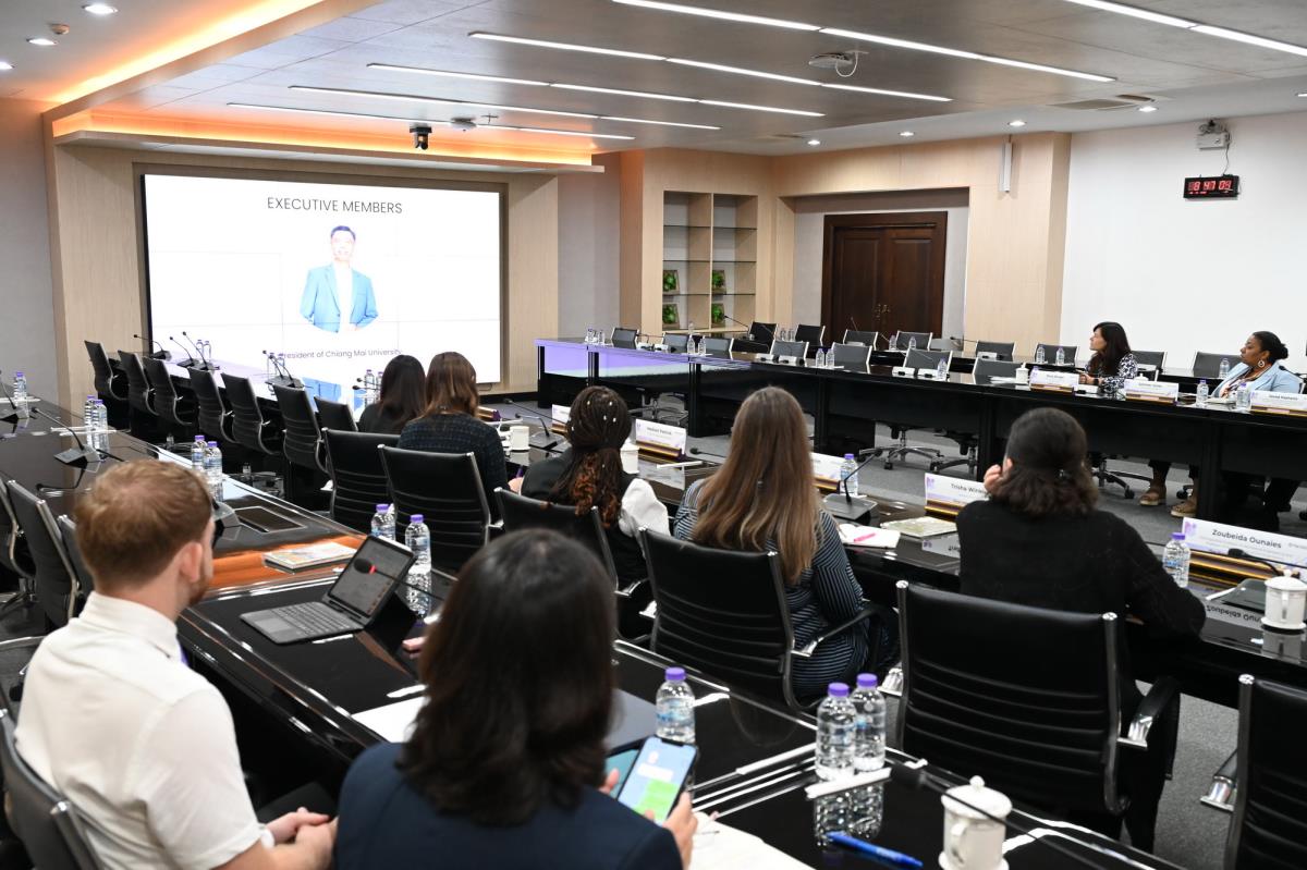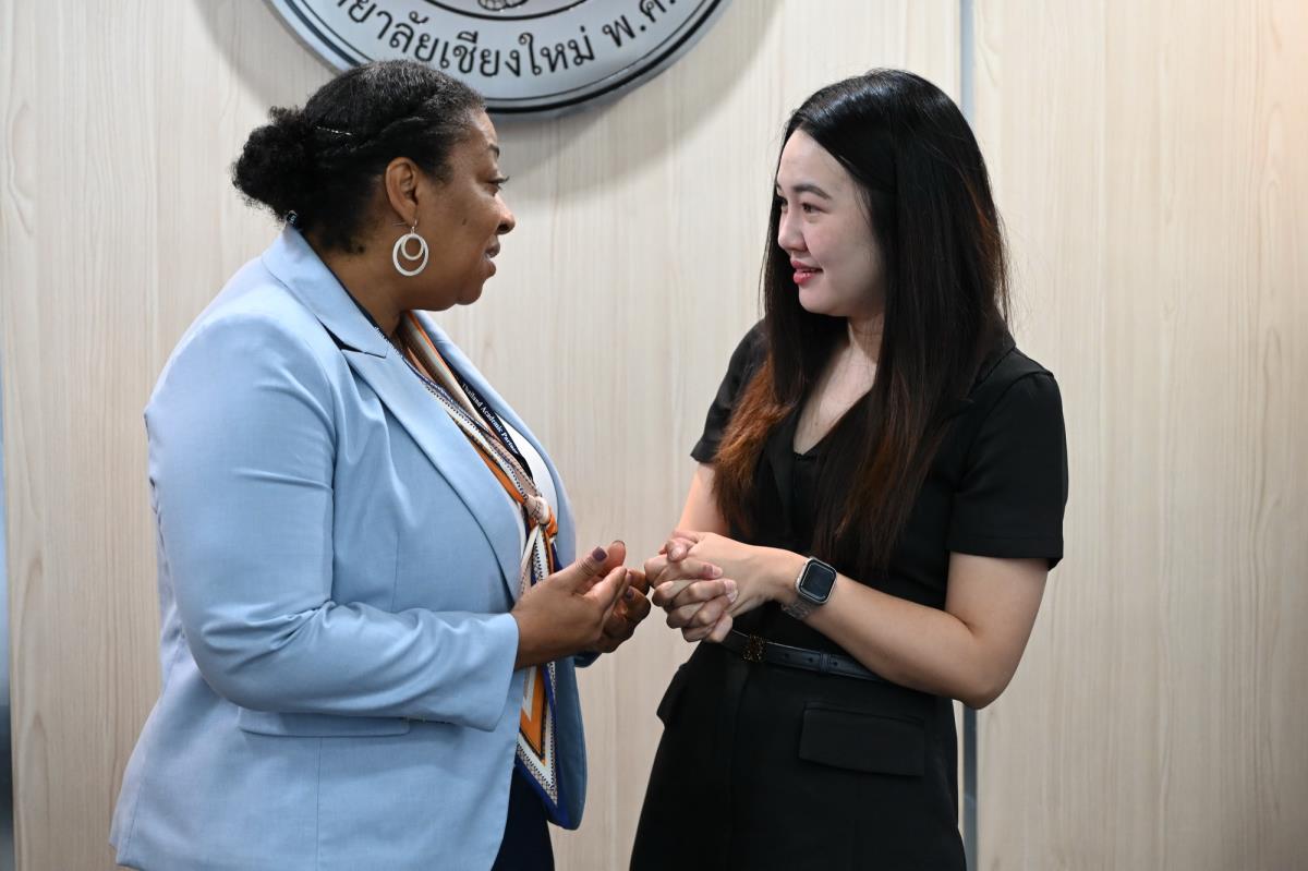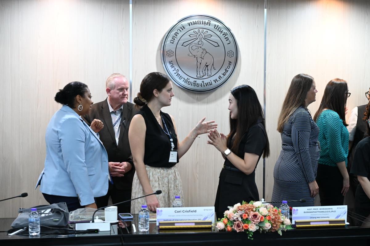 ผู้ช่วยศาสตราจารย์ ดร.ทพญ.วรกัญญา บูรณพัฒนา ผู้ช่วยอธิการบดี พร้อมด้วยคณะผู้บริหารมหาวิทยาลัยเชียงใหม่ ให้การต้อนรับคณะผู้แทนจากมหาวิทยาลัยในประเทศสหรัฐอเมริกา ภายใต้โครงการ International Academic Partnership Program 2025 (IAPP Thailand 2025) โดยการสนับสนุนจากสถานทูตสหรัฐอเมริกา ประจำประเทศไทย เพื่อรับฟังข้อมูลข้อมหาวิทยาลัย ตามนโยบายมุ่งเน้นการช่วยเหลือสถาบันอุดมศึกษาของสหรัฐฯ ในการสร้างความร่วมมือเชิงกลยุทธ์ระยะยาวกับสถาบันคู่สัญญาของไทย และเดินทางไปเยือนคณะวิศวกรรมศาสตร์ และคณะวิทยาศาสตร์ เพื่อแสวงหาความร่วมมือด้านสาขา STEM ด้านวิศวกรรมศาสตร์และวิทยาศาสตร์ เยี่ยมชมห้องทดลอง รวมถึงสร้างเครือข่ายกับคณาจารย์ ณ ห้องประชุมพระยาศรีวิสารวาจา อาคารสำนักงานมหาวิทยาลัย 1 มหาวิทยาลัยเชียงใหม่ วันพฤหัสบดีที่ 30 ตุลาคม พ.ศ. 2568