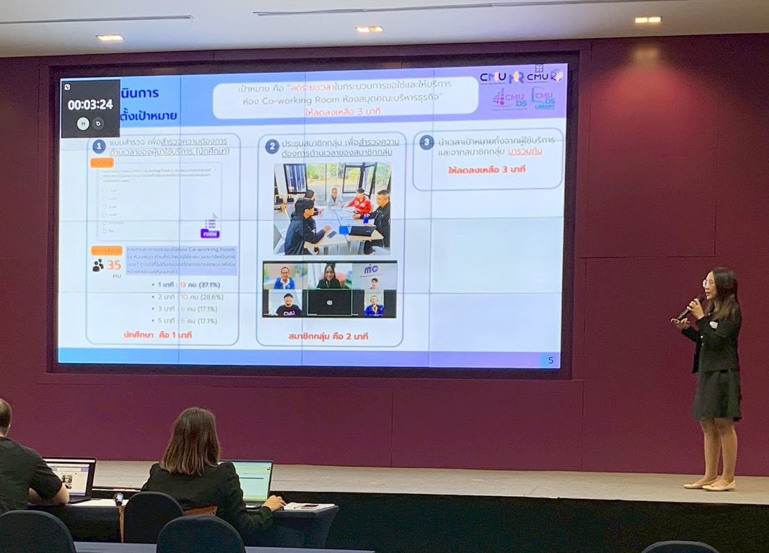 ในปีนี้มีผลงานส่งเข้าร่วมประกวดทั้งสิ้น 154 ผลงาน โดยมีการพิจารณาคัดเลือกผลงานตั้งแต่เดือนกันยายนที่ผ่านมา และจัดให้มีรอบการนำเสนอผลงานในรูปแบบ Project Presentation เมื่อวันที่ 30 ตุลาคม 2568 ณ สำนักบริการวิชาการ และศูนย์นวัตกรรมการเรียนรู้ (ILC) มหาวิทยาลัยเชียงใหม่ ผลงานของคุณอัญชลี นำเสนอในหัวข้อ “เพิ่มประสิทธิภาพการให้ข้อมูลกฎระเบียบด้านงานวิจัย คณะบริหารธุรกิจ” ซึ่งมุ่งพัฒนากระบวนการให้บริการข้อมูลด้านกฎระเบียบงานวิจัยของคณะให้มีประสิทธิภาพมากยิ่งขึ้น ทั้งในด้านความรวดเร็ว ความถูกต้อง และการเข้าถึงข้อมูล โดยสอดคล้องกับแนวทางการพัฒนาที่ยั่งยืนของมหาวิทยาลัยเชียงใหม่ จึงทำให้ผลงานดังกล่าวได้รับการพิจารณาให้เป็นผลงานที่โดดเด่นที่สุดจากเกณฑ์การประเมินด้านคุณภาพและประสิทธิภาพของงาน