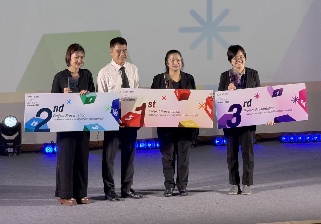 CMUBS ร่วมแสดงความยินดีกับบุคลากรคว้ารางวัลชนะเลิศ CMU KM DAY 2025 จากผลงานพัฒนางานประจำ สู่ต้นแบบการจัดการความรู้เพื่อความยั่งยืน