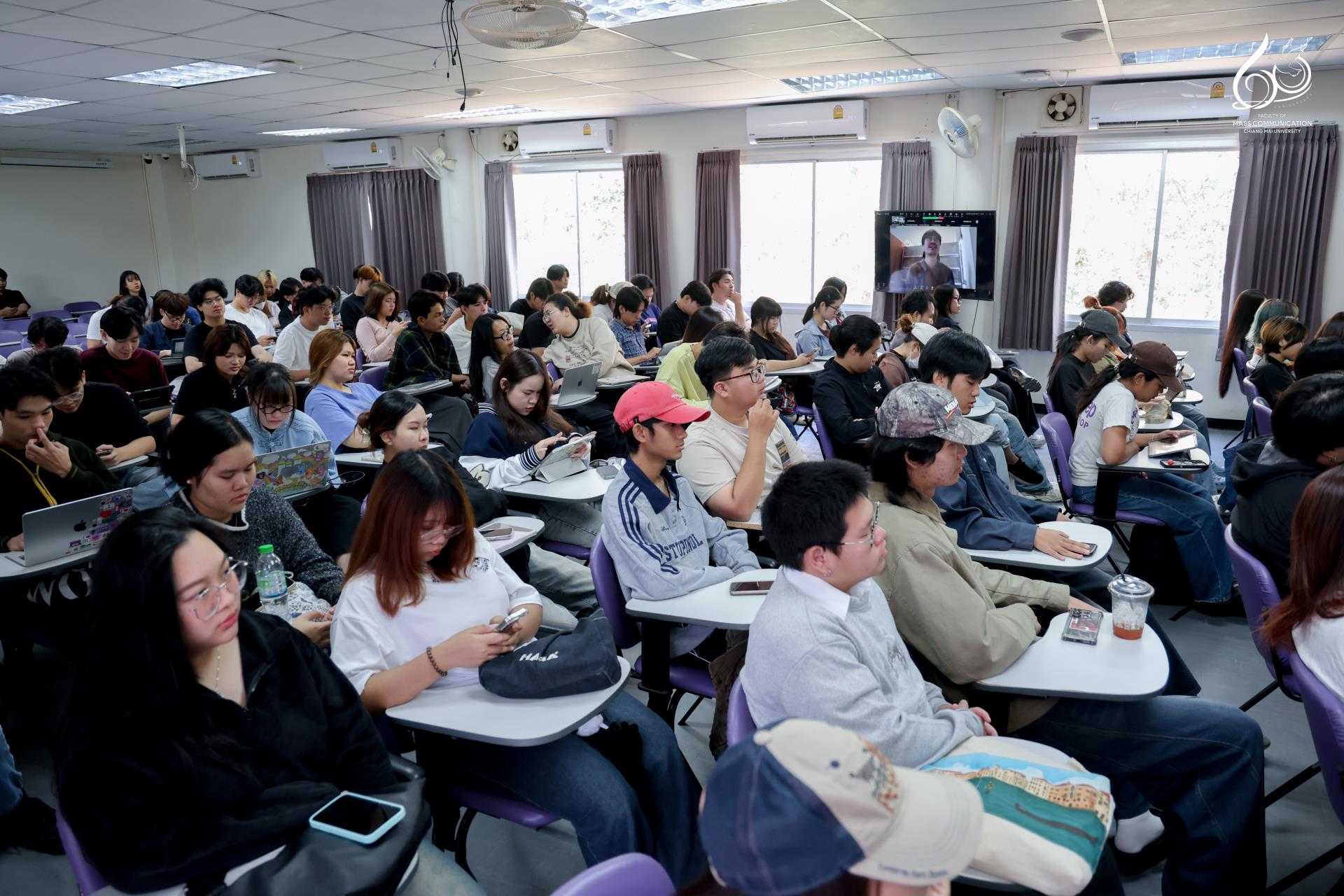 คณะการสื่อสารมวลชน มหาวิทยาลัยเชียงใหม่ จัดกิจกรรม Inspiration Day “แรงบันดาลใจในการค้นคว้า” Digital Film Talk to Ter Nawapol : การทดลองครั้งใหม่ในภาพยนตร์ของ เต๋อ นวพล” โดยได้รับเกียรติจาก คุณนวพล ธำรงรัตนฤทธิ์ ผู้กำกับภาพยนตร์ นักเขียนบท นักเขียน และช่างภาพชื่อดัง ร่วมบรรยายพิเศษผ่านรูปแบบ Online Meeting ในหัวข้อ “การทดลองครั้งใหม่ในภาพยนตร์ของ เต๋อ นวพล” เพื่อเปิดพื้นที่การเรียนรู้และสร้างแรงบันดาลใจด้านการสร้างสรรค์ภาพยนตร์ร่วมสมัย ให้แก่นักศึกษาและผู้สนใจ โดยมีนักศึกษากระบวนวิชา 852301 ภาพยนตร์ทดลองสำหรับงานพาณิชย์ศิลป์ (Experimental Film for Commercial Art) และนักศึกษาที่สนใจเข้าร่วมอย่างพร้อมเพรียง ณ ห้อง MCB 2405 อาคารเรียนรวม คณะการสื่อสารมวลชน มหาวิทยาลัยเชียงใหม่ ในวันเสาร์ที่ 28 กุมภาพันธ์ 2569 เวลา 10.00 – 12.00 น.