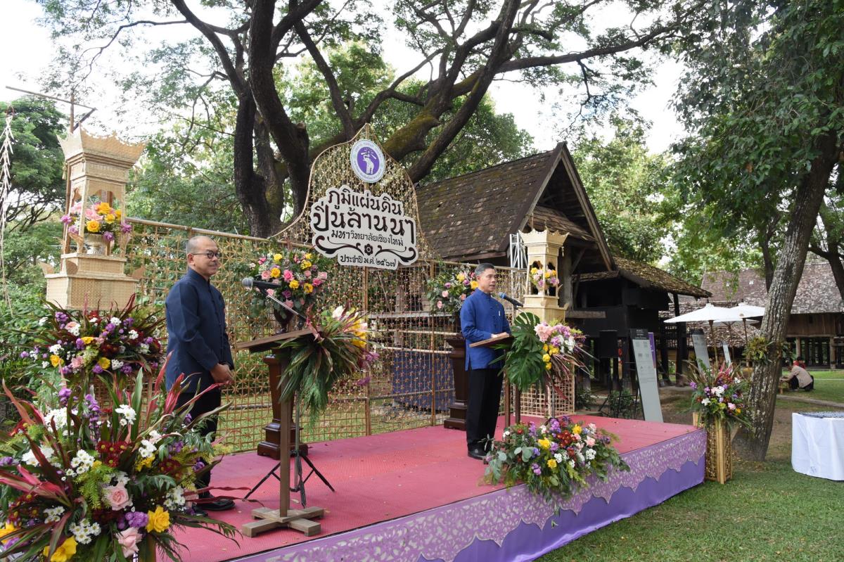 สำนักส่งเสริมศิลปวัฒนธรรมและล้านนาสร้างสรรค์ มหาวิทยาลัยเชียงใหม่ จัดพิธีมอบรางวัลภูมิแผ่นดิน ปิ่นล้านนา มหาวิทยาลัยเชียงใหม่ โดยมีศาสตราจารย์ ดร.นพ.พงษ์รักษ์ ศรีบัณฑิตมงคล อธิการบดีมหาวิทยาลัยเชียงใหม่ เป็นประธานมอบรางวัล ศาสตราจารย์ปฏิบัติ ดร.เอกชัย มหาเอก รองอธิการบดีมหาวิทยาลัยเชียงใหม่ กล่าวรายงาน ซึ่งเป็นรางวัลอันทรงเกียรติที่มหาวิทยาลัยเชียงใหม่ มอบให้กับศิลปินพื้นบ้านที่มีคุณูปการต่อวงการศิลปวัฒนธรรมล้านนา ใน 5 สาขา จำนวน 6 ท่าน คือ สาขาส่งเสริมศิลปวัฒนธรรมและภูมิปัญญา นายรัตนะ ตาแปง สาขาภาษาและวรรณกรรม นายเฉลิมเวศน์ อูปธรรมและนางจารุวรรณ เหมืองจา สาขาทัศนศิลป์ นายอิทธิพล ปัญญาแฝง และสาขาศิลปะการแสดงหรือการขับขานพื้นบ้าน นางกฤษณา กาญจนสุระกิจ เพื่อสร้างความภาคภูมิใจ และแรงบันดาลใจในการร่วมสร้างสรรค์ผลงาน ตลอดจนการถ่ายทอดวิชาความรู้ ทักษะ ความสามารถ ให้กับสังคมต่อไป ณ พิพิธภัณฑ์เรือนโบราณล้านนา สำนักส่งเสริมศิลปวัฒนธรรมและล้านนาสร้างสรรค์ มหาวิทยาลัยเชียงใหม่ วันอาทิตย์ที่ 14 ธันวาคม พ.ศ. 2568