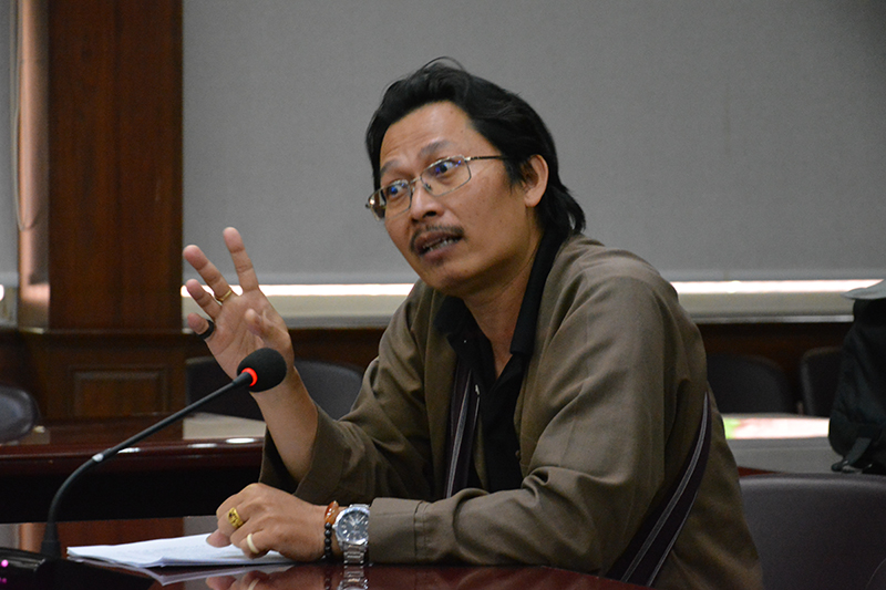รองศาสตราจารย์ ดร.วรลัญจก์ บุญยสุรัตน์ ผู้อำนวยการสถาบันวิจัยสังคม มหาวิทยาลัยเชียงใหม่ กล่าวเปิดการเสวนาวิชาการ จารึกและเอกสารโบราณ 725 ปีเมืองเชียงใหม่ เนื่องในวันอนุรักษ์มรดกไทย