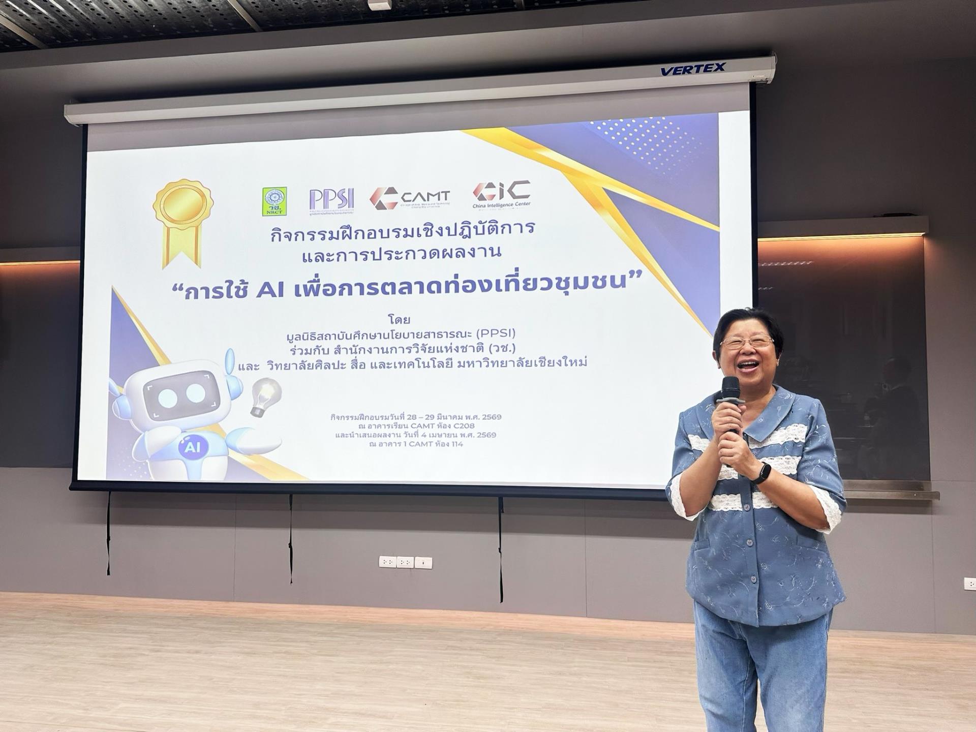 เชียงใหม่ – เมื่อวันที่ 4 เมษายน พ.ศ. 2569 ณ วิทยาลัยศิลปะ สื่อและเทคโนโลยี (CAMT) มหาวิทยาลัยเชียงใหม่ ศูนย์ China Intelligence Center (CIC) ได้ร่วมจัดกิจกรรมประกวดแข่งขันการสร้างสื่อการตลาดออนไลน์ด้วย Generative AI สำหรับการท่องเที่ยวและวิสาหกิจชุมชน ภายใต้การสนับสนุนของ มูลนิธิสถาบันศึกษานโยบายสาธารณะ (PPSI) และ สำนักงานการวิจัยแห่งชาติ (วช.)เพื่อวิสัยทัศน์แห่งการขับเคลื่อนชุมชนด้วยเทคโนโลยี