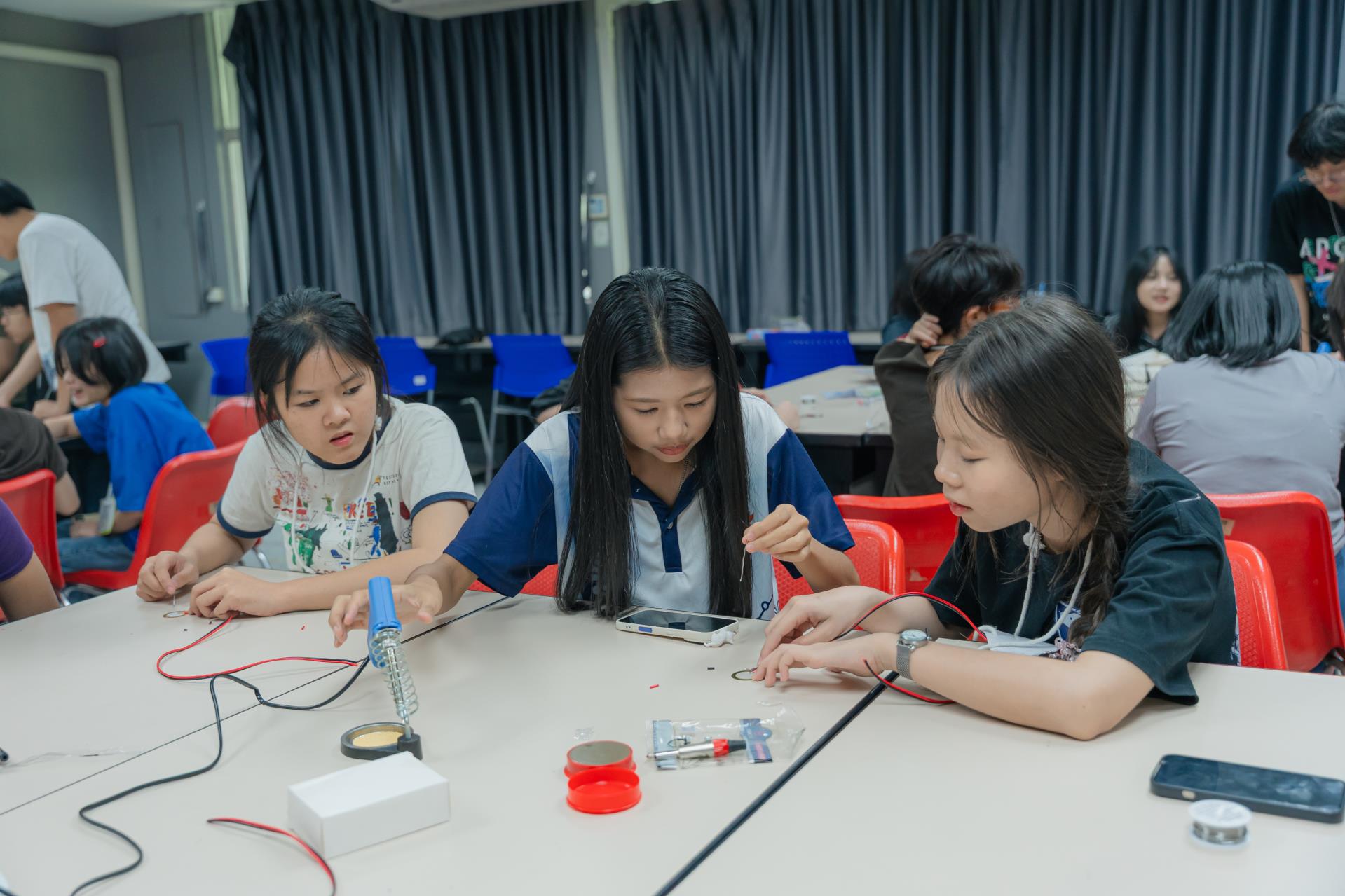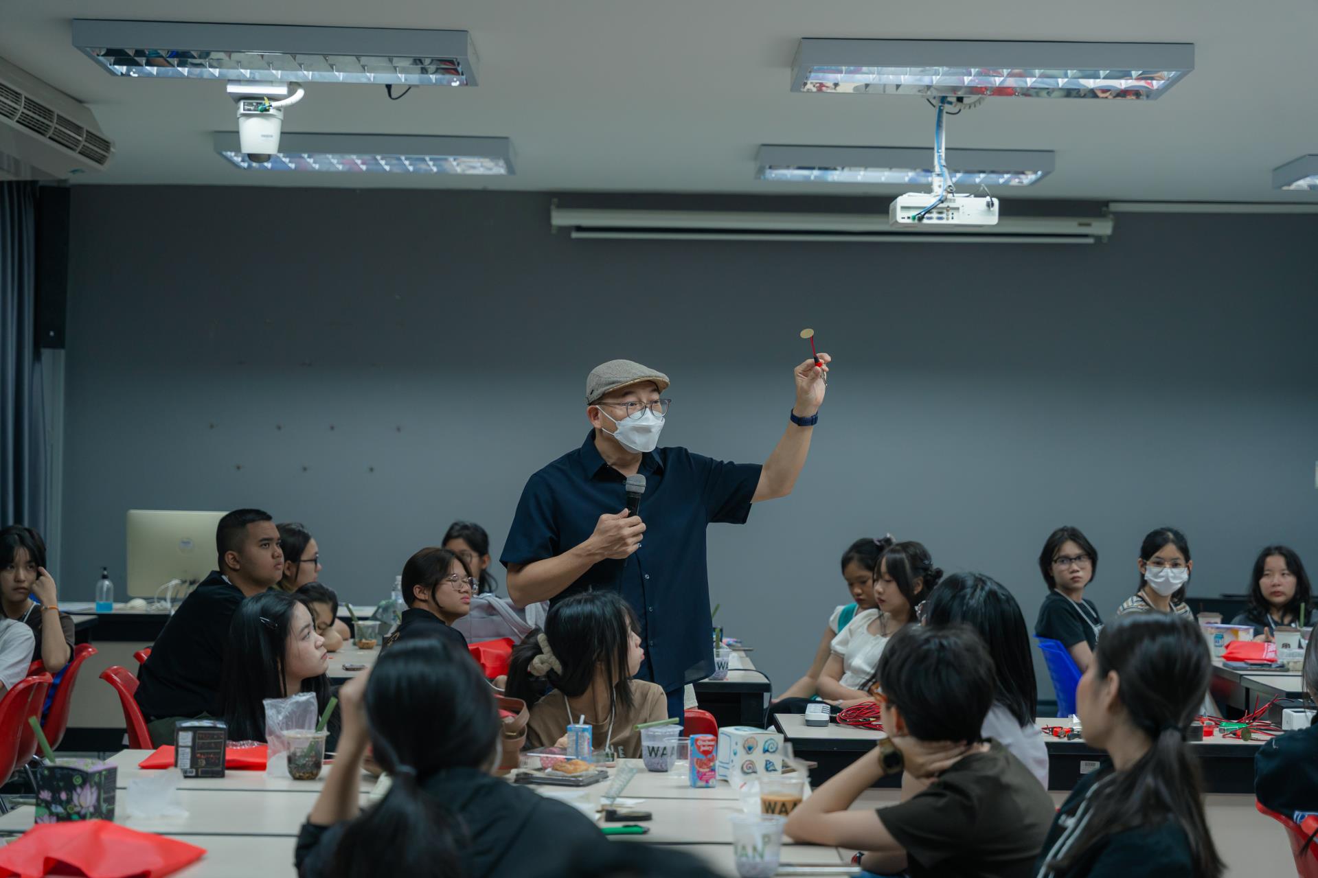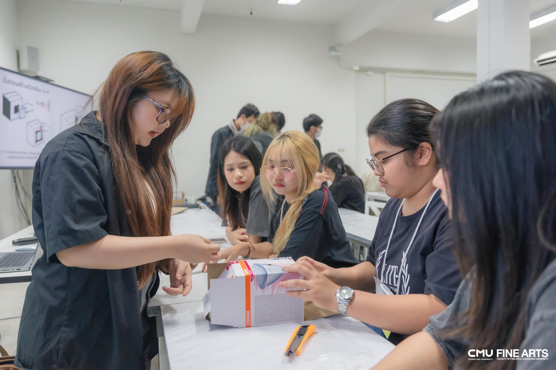 วันที่สาม (9 เมษายน 2569) เป็นการต่อยอดสู่การสร้างสรรค์งานศิลปะร่วมสมัย โดยผู้เข้าร่วมได้เรียนรู้กระบวนการภาพพิมพ์ในกิจกรรม Plaswood Print การออกแบบกราฟิกบนบรรจุภัณฑ์ในกิจกรรม Design on the Box และการทดลองสร้างสื่อเสียงผ่านกิจกรรม DIY Piezo Microphone จากสาขาสื่อศิลปะและการออกแบบสื่อ