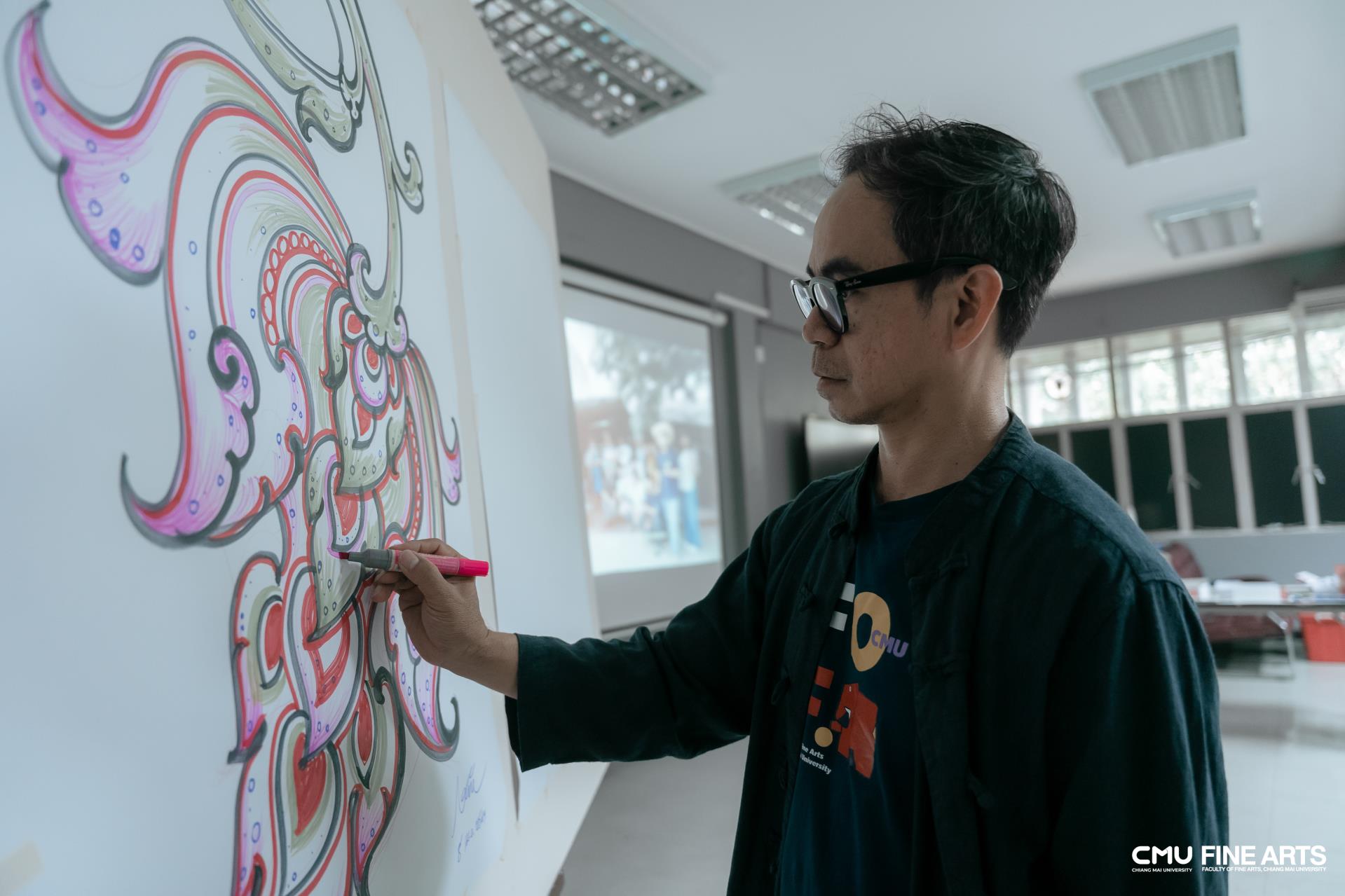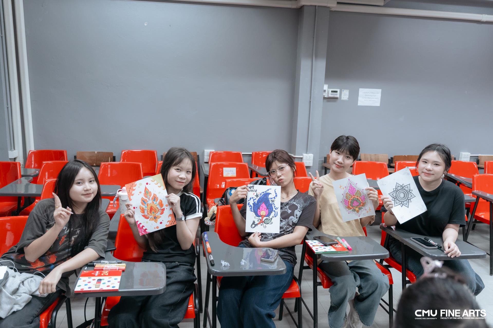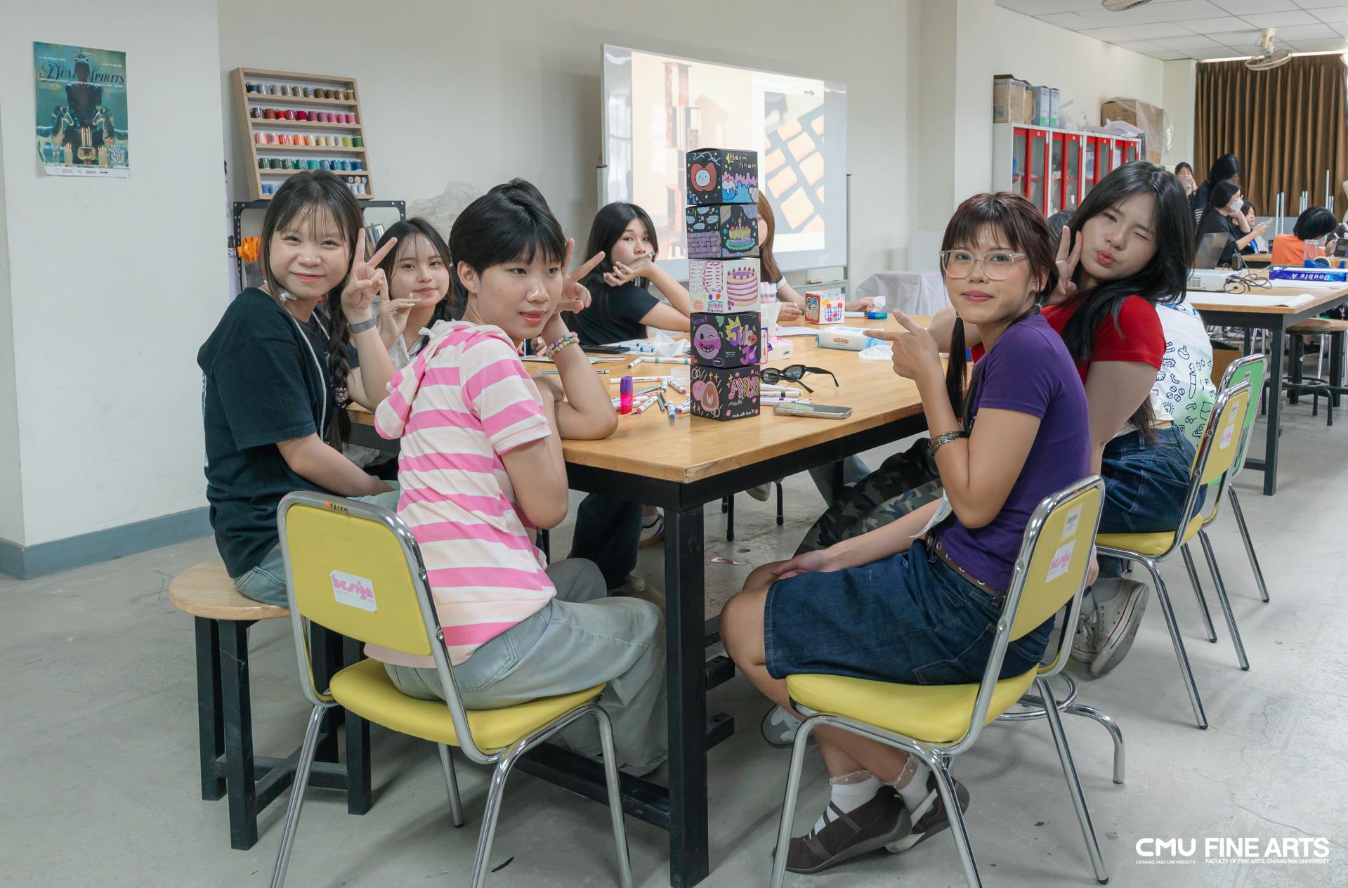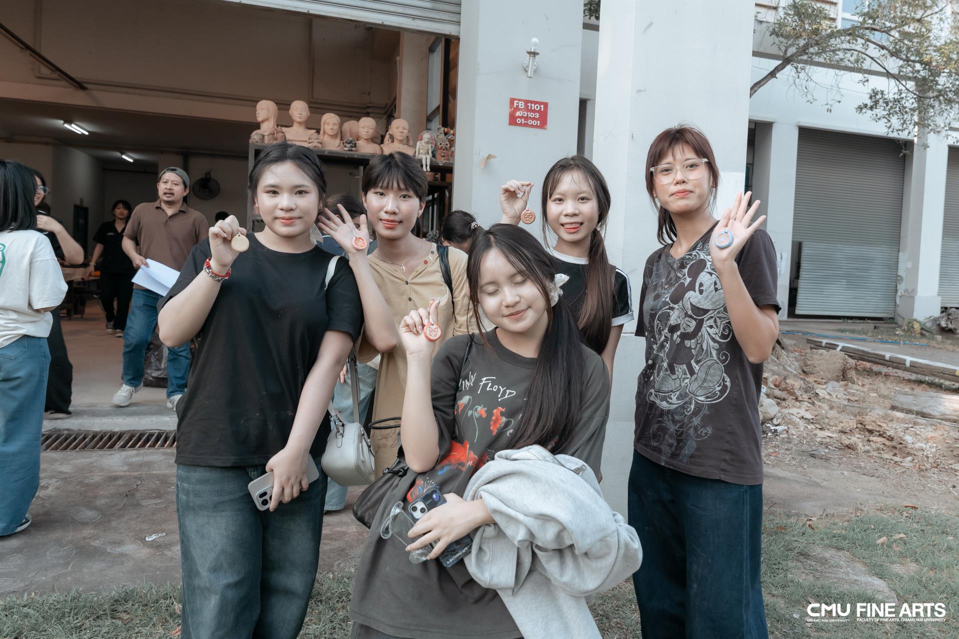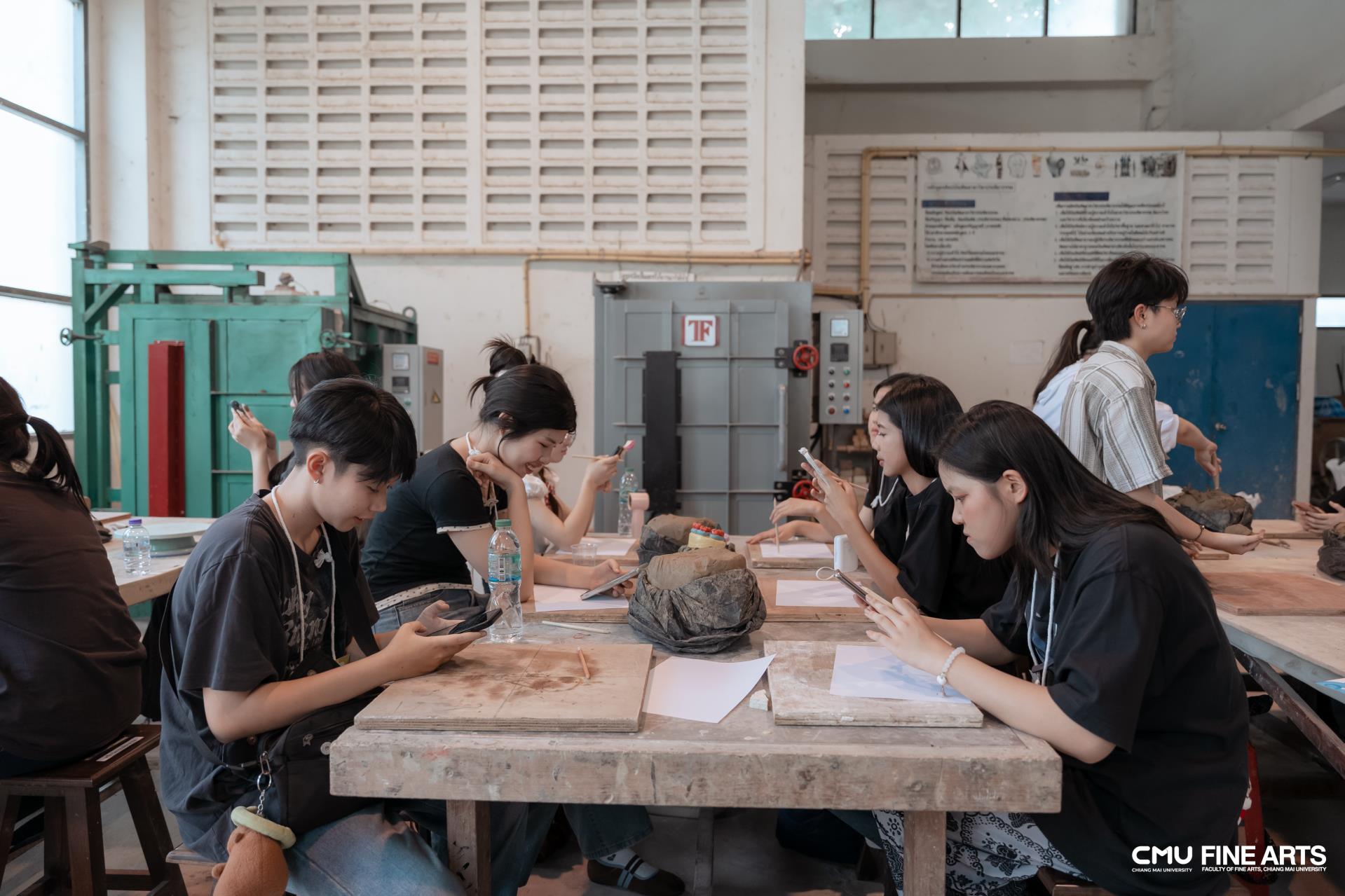 วันที่สอง (8 เมษายน 2569) ผู้เข้าร่วมได้พัฒนาทักษะอย่างต่อเนื่องผ่านกิจกรรม Workshop จากหลากหลายสาขาวิชา อาทิ Paper Cut Self-Portrait จากสาขาจิตรกรรม การเรียนรู้ลวดลายไทยในกิจกรรม “ต่อลายครู” จากสาขาศิลปะไทยและวัฒนธรรมสร้างสรรค์ และการปั้นงานสามมิติในกิจกรรม Claytime Cuties จากสาขาประติมากรรม