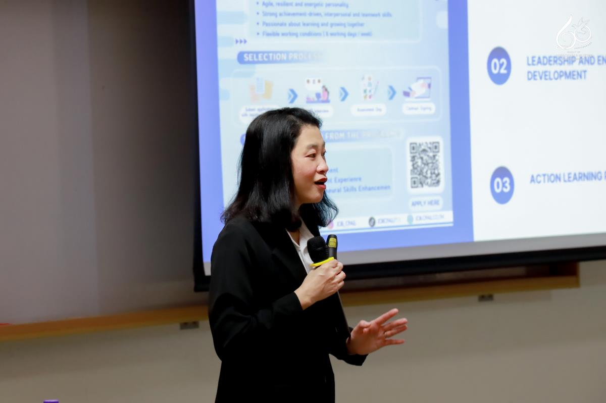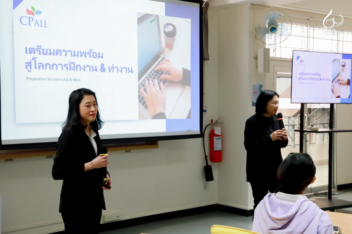 กิจกรรมครั้งนี้ได้รับเกียรติจาก คุณกุสุมา สุขวงศ์ ผู้จัดการทั่วไปด้านสรรหาว่าจ้าง คุณวิชชุนันท์ สุวรรณหงส์ ผู้เชี่ยวชาญส่วนงานสรรหาและว่าจ้าง และ คุณอุชุกร สุขพันธ์ เจ้าหน้าที่ด้านสรรหาว่าจ้าง หน่วยงานทรัพยากรบุคคล บริษัท ซีพี ออลล์ จำกัด (มหาชน) ทำหน้าที่เป็นวิทยากรผู้บรรยาย ถ่ายทอดประสบการณ์ตรงเกี่ยวกับคุณสมบัติของนักศึกษาที่สถานประกอบการชั้นนำมองหา แนวทางการพัฒนาศักยภาพก่อนสมัครฝึกงาน รายละเอียดโครงการฝึกงาน กระบวนการสมัคร ช่วงเวลาที่เหมาะสม รวมถึงประเภทสถานประกอบการที่เปิดรับ นอกจากนี้ยังกล่าวถึงความสำคัญของทักษะการทำงานจริง และวิธีเตรียมความพร้อมเพื่อให้ประสบความสำเร็จในการฝึกงานอย่างมืออาชีพ