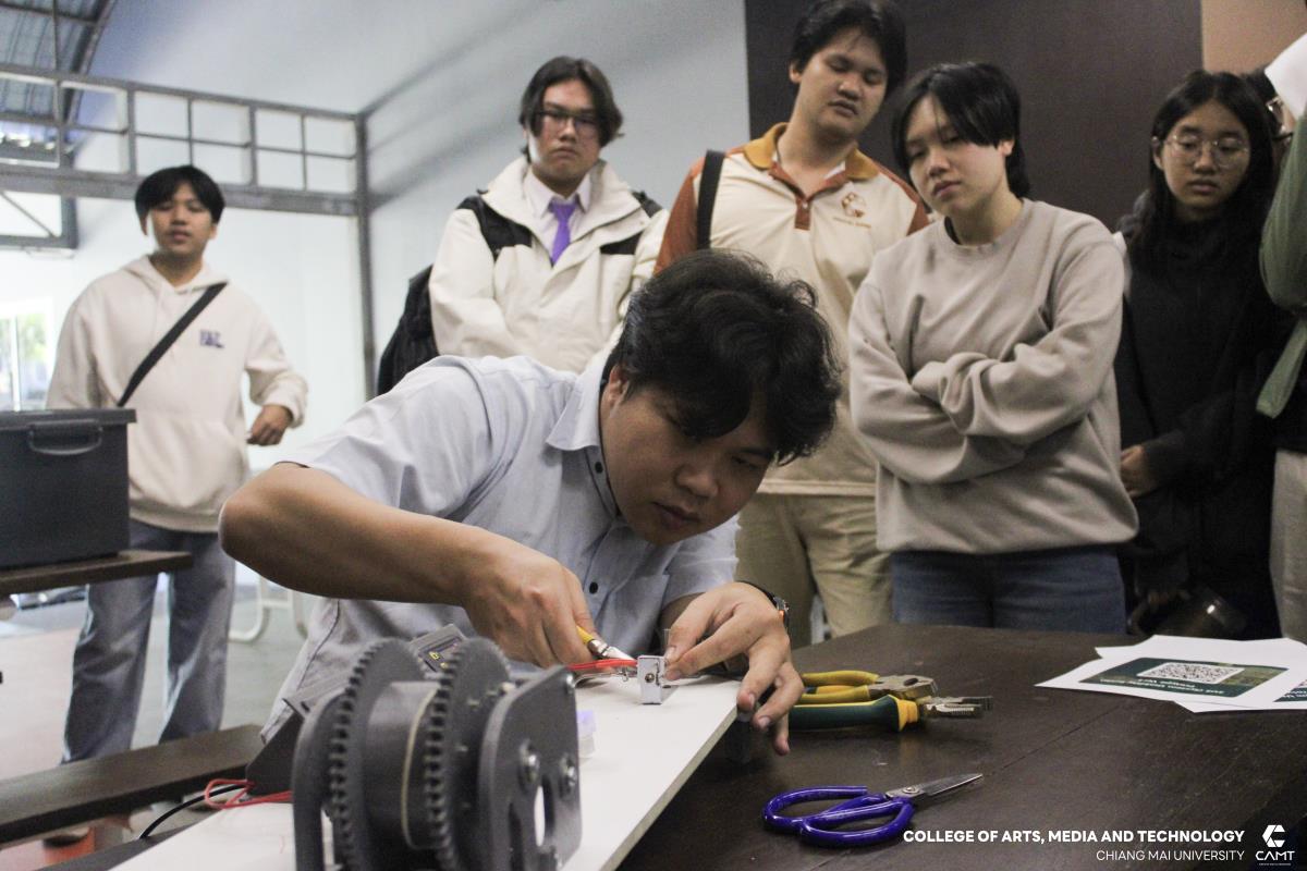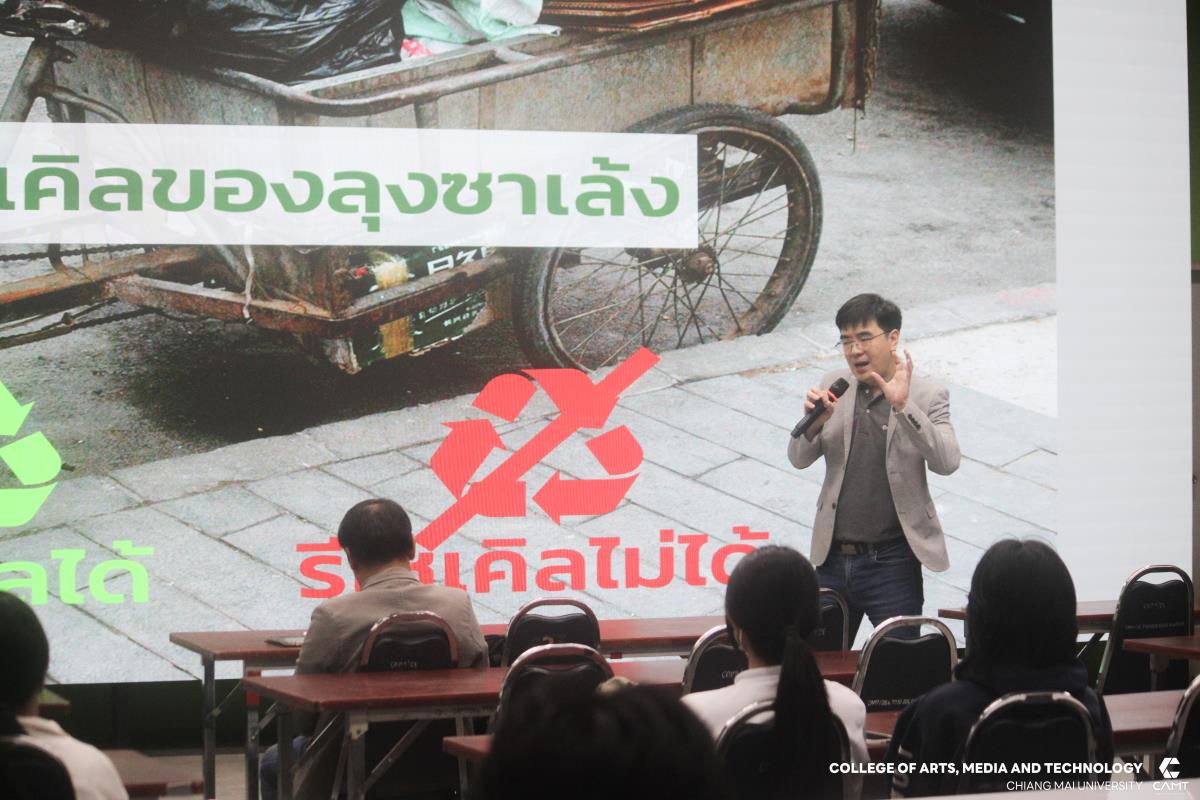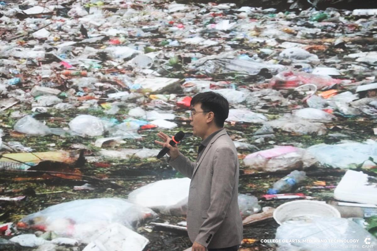 วิทยาลัยศิลปะ สื่อ และเทคโนโลยี มหาวิทยาลัยเชียงใหม่ ภายใต้โครงการ “การปรับปรุงและพัฒนาเพื่อลดงบประมาณในการผลิตเครื่องบดพลาสติก และเครื่องรัดเส้นพลาสติก และการวิจัยกรณีศึกษาประสิทธิภาพและประสบการณ์ของผู้ใช้งานผ่านผลิตภัณฑ์จากเส้นพลาสติกรีไซเคิล” โดยมีผู้ช่วยศาสตราจารย์ ดร.ปฏิสนธิ์ ปาลี อาจารย์ประจำสาขาดิจิทัลเกม พร้อมด้วยคณะทำงาน ดำเนินการจัดกิจกรรม "plastic pollution and potential solutions Workshop" ให้แก่นักศึกษา จำนวน 50 คน โดยมีวัตถุประสงค์หลักเพื่อพูดคุยเกี่ยวประเด็นของมลพิษจากพลาสติก พร้อมทั้งร่วมเป็นส่วนหนึ่งของการวิจัยกรณีศึกษาประสิทธิภาพและประสบการณ์ของผู้ใช้งานผ่านผลิตภัณฑ์จากเส้นพลาสติกรีไซเคิล ผ่าน Workshop ทดลองการใช้งานเครื่องรีดเส้นพลาสติกสำหรับใช้ใน 3D print เพื่อแก้ไขปัญหาในเรื่องของ plastic pollution ซึ่งกิจกรรมครั้งนี้ได้รับเกียรติจากวิทยากรผู้เชี่ยวชาญ Mr.Prem Pruktayanon กรรมการผู้จัดการ บริษัท กรีนทูเก็ต จำกัด ได้ร่วมพูดคุยและแบ่งปันประสบการณ์ ในวันที่ 15 ธันวาคม 2568 ณ Room112 อาคารวิทยาลัยศิลปะ สื่อและเทคโนโลยี