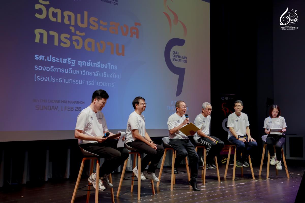 มหาวิทยาลัยเชียงใหม่ ร่วมกับ สมาคมนักศึกษาเก่ามหาวิทยาลัยเชียงใหม่ และ คณะการสื่อสารมวลชน มหาวิทยาลัยเชียงใหม่ ในฐานะอนุกรรมการฝ่ายพิธีการและประชาสัมพันธ์ จัดงาน แถลงข่าวการแข่งขันการวิ่งการกุศล “CMU – Chiang Mai Marathon 2026” ครั้งที่ 9 เพื่อเชิญชวนผู้ที่รักสุขภาพและการวิ่งร่วมเป็นส่วนหนึ่งของกิจกรรมสุดยิ่งใหญ่ระดับมหาวิทยาลัย ภายใต้ธีม “A thing that never changes” ณ ออดิทอเรียม ชั้น 3 อาคารศูนย์นวัตกรรมการสื่อสาร (CIC) คณะการสื่อสารมวลชน มหาวิทยาลัยเชียงใหม่ ในวันพฤหัสบดีที่ 16 ตุลาคม 2568 เวลา 09.30 – 11.15 น.