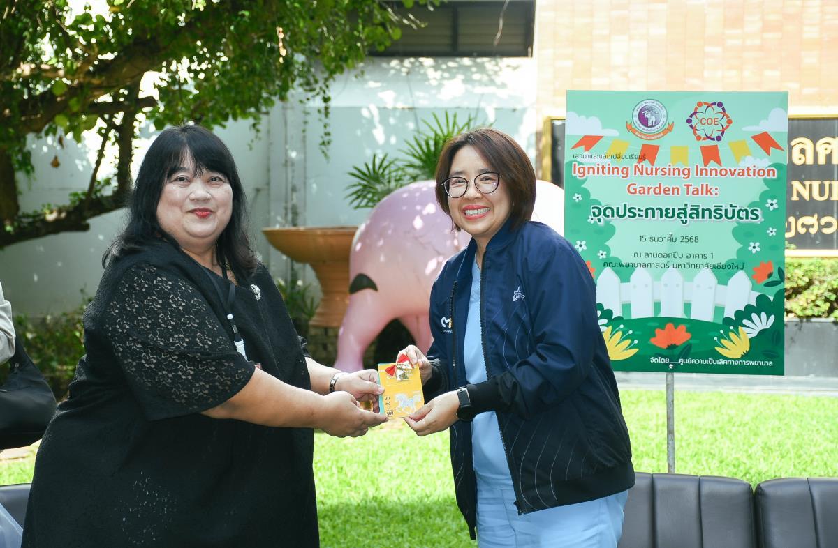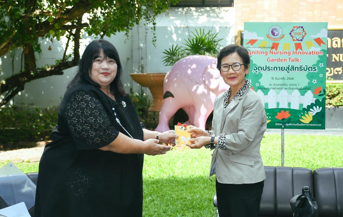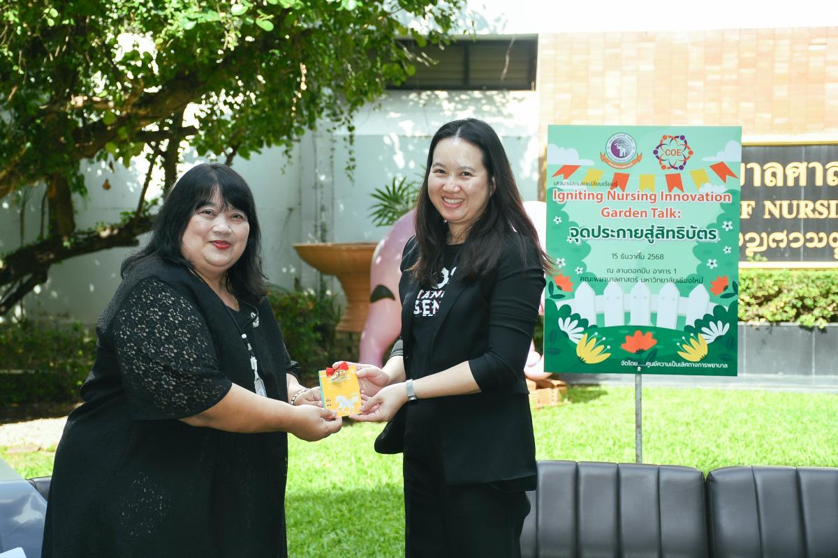 วันจันทร์ที่ 15 ธันวาคม 2568 ศูนย์ความเป็นเลิศทางการพยาบาล (Center of Excellence in Nursing) คณะพยาบาลศาสตร์ มหาวิทยาลัยเชียงใหม่ จัดกิจกรรมเสวนาและแลกเปลี่ยนเรียนรู้ "Igniting Nursing Innovation Garden Talk: จุดประกายสู่สิทธิบัตร" พิธีเปิดได้รับเกียรติจาก รองศาสตราจารย์ ดร.เพชรสุนีย์ ทั้งเจริญกุล รองคณบดี เป็นประธาน ณ ลานดอกปีบ อาคาร 1