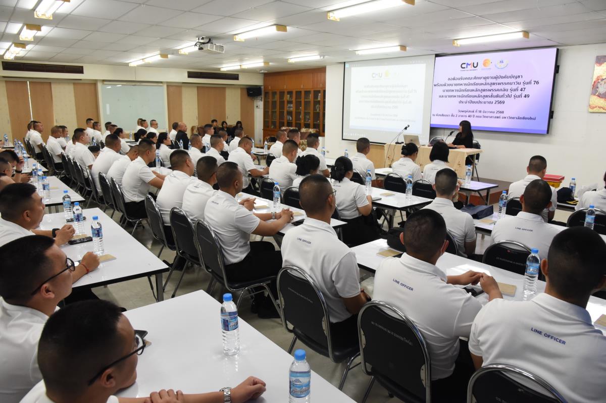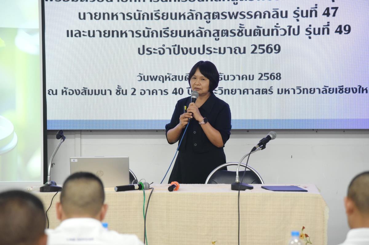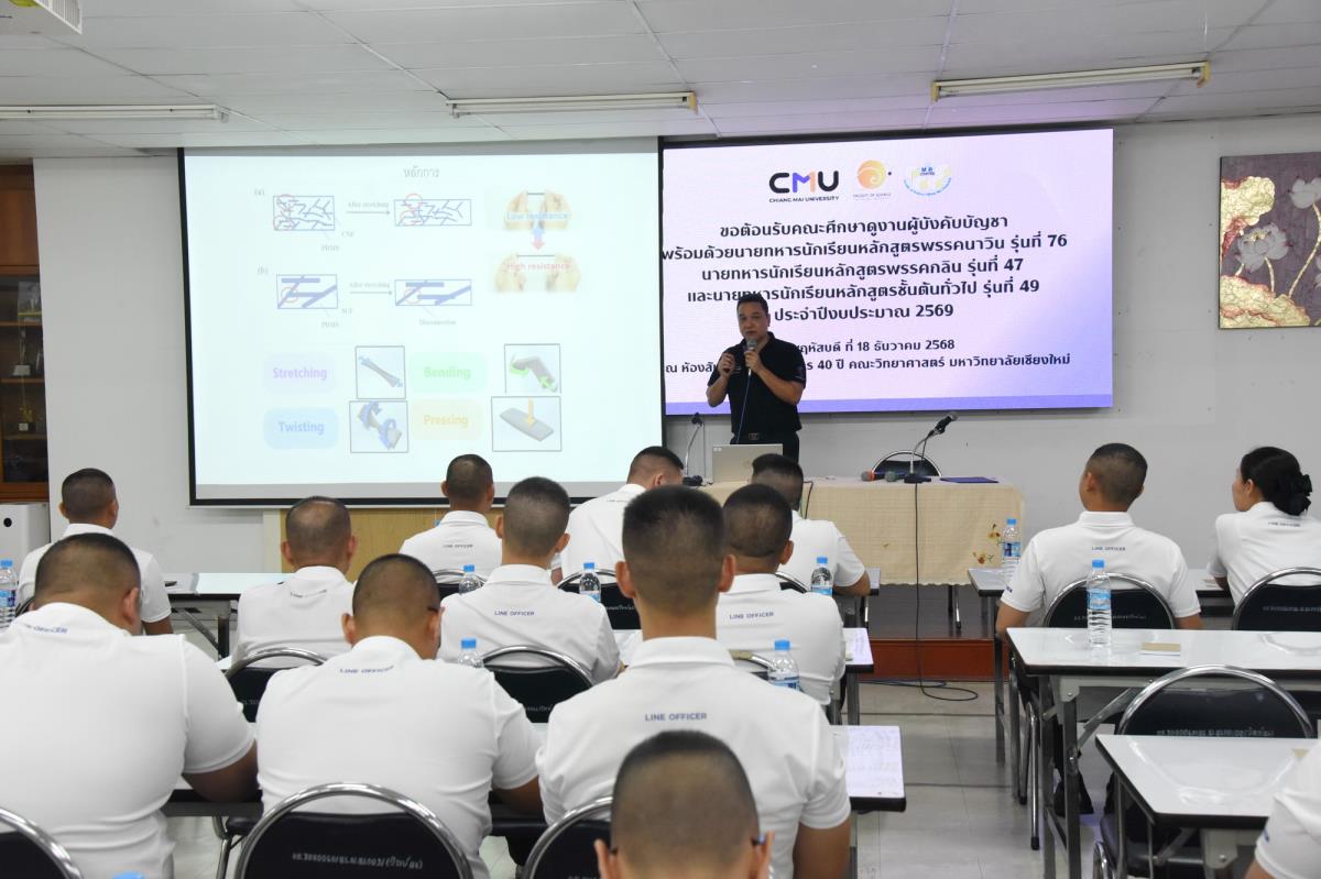 รองศาสตราจารย์ ดร.วินิตา บุณโยดม รองอธิการบดีมหาวิทยาลัยเชียงใหม่ กล่าวต้อนรับคณะผู้บังคับบัญชาพร้อมด้วยนายทหารนักเรียน หลักสูตรพรรคนาวิน รุ่นที่ 76 นายทหารนักเรียนหลักสูตรพรรคกลิน รุ่นที่ 47 และนายทหารนักเรียน หลักสูตรชั้นต้นทั่วไป รุ่นที่ 49 กรมยุทธศึกษาทหารเรือ ประจำปีงบประมาณ 2569 ในโอกาสที่มาศึกษาดูงานเกี่ยวกับแอดวานซ์แมททีเรียลการวิจัยและพัฒนาทางด้านฟิสิกส์ และเยี่ยมชมหน่วยวิจัยวัสดุอิเล็กโทรนิกส์ ภาควิชาฟิสิกส์และวัสดุศาสตร์ คณะวิทยาศาสตร์ โดยมีผู้ช่วยศาสตราจารย์ ดร. ชัยสิทธิ์ บรรจงประเสริฐ หัวหน้าศูนย์วิจัยวัสดุศาสตร์ พร้อมด้วยคณะผู้บริหาร คณาจารย์และเจ้าหน้าที่ เป็นวิทยากรบรรยาย ณ ห้องสัมมนา ชั้น 2 อาคาร 40 ปีคณะวิทยาศาสตร์ มหาวิทยาลัยเชียงใหม่ วันพฤหัสบดีที่ 18 ธันวาคม 2568